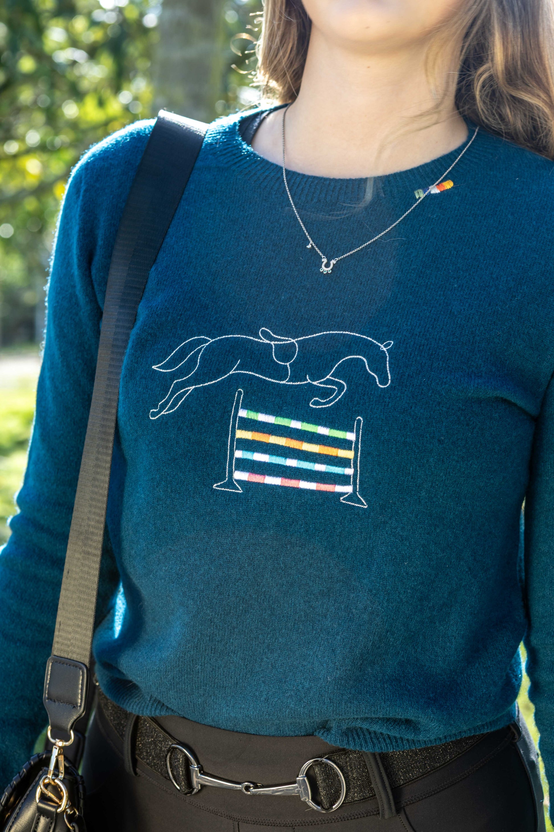 Pullover Careca lã Cavalo Saltando Moderno - Marinho